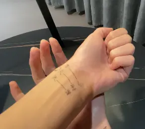 我两只手腕上都标注了,两手各有寸关尺,三部共六部脉。
